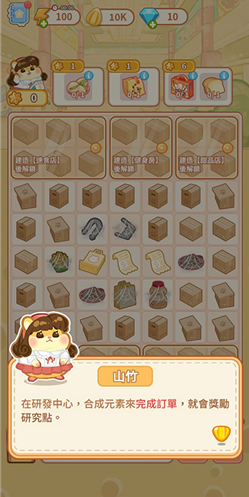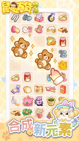 1、在超市的研发中心,鼠鼠需要将游戏框内的元素合成来完成订单!