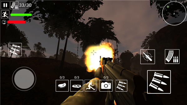 3、左边控制走位,右边控制角色的武器及射击,玩家需要通过灵活的走位,借助各种地形优势,躲避警笛人的追捕;需要时刻保持高度警惕,去应对警笛头的突然来袭;