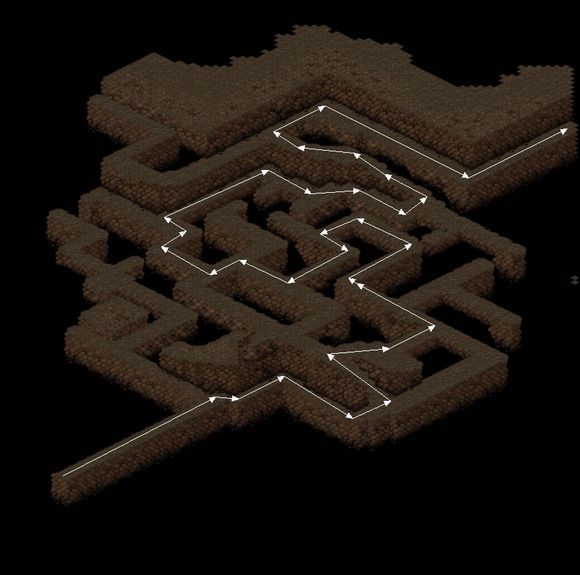 从刚刚下来的地方往左上走,岔路,右上,岔路,右下,岔路,右上。