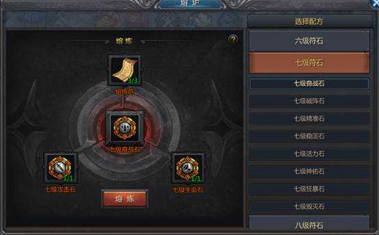 熔炉开启后可以进行符石熔炼,玩法很简单,把两颗6级以上的同等级的符石进行熔炼