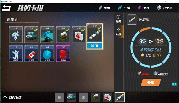 所以作为一个萌新玩家,前期升级哪个道具更实用、更适合自己,根据自己阵营会有影响,然后将自己喜爱常用的道具放进下面卡槽,游戏内就可以使用啦!
