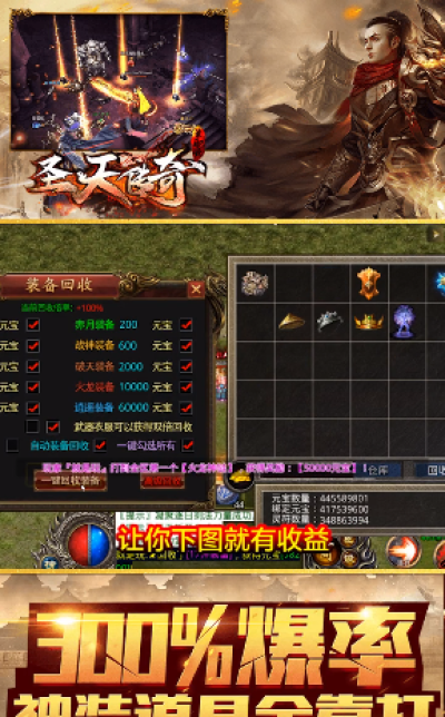 《圣天传奇单职业》 无限制打宝地图 装备随便爆!超高攻速传奇,全新传奇单职业复古Boss可爆所有装备,稀有戒指霸气神装,玩到停不下来,赶紧来!!!