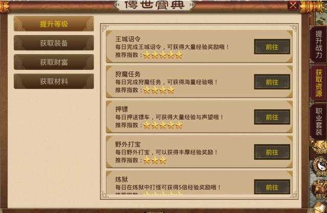 游戏还有个传世宝典,里面有每个等级任务、进阶、职业套装的图文描述。可以帮助玩家快速熟悉游戏的玩法,完成修炼任务,获得大量经验,避免产生失误,可以多看看,帮助自己更快提升。