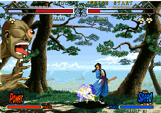 技——普通技可以组合起来,像是AAB或AAAB都可以接起来,技只要能量全满便可用乱舞奥义(↓↓AorB发动),这一代的乱舞奥义变更为突进技,↓↓A为中段↓↓B为下段,