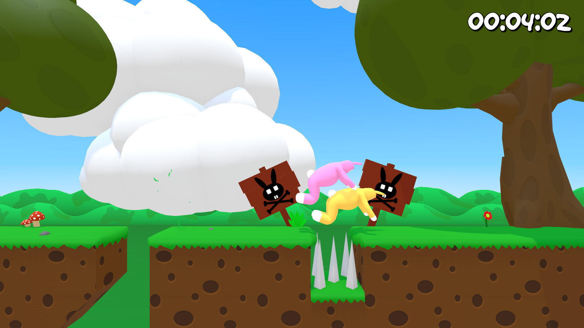 其中最刺激的就是死亡模式,这个是4人联机一起玩的,这个就比较坑了,你要控制你的兔子人,将其他人提出悬崖、折断脖子、拖到道钉上,反正就是特别残忍的玩法,但是却能体验一种坑别人的趣味玩法,两个兔子人在游戏中互相打闹,踹来踹去,特别有意思,不愧是被大家称为“鬼畜”的魔性游戏。