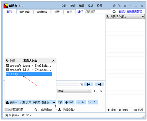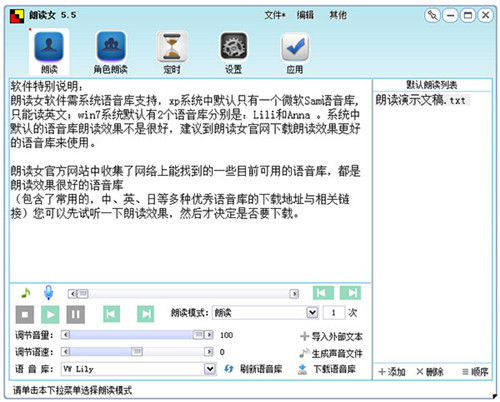 其本身不包含任何语音库,所以您在安装好朗读女软件后: