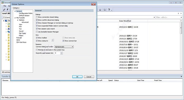 10、显示连接关闭对话框、显示确认断开对话框、启动时显示会话管理器或连接对话框、在连接对话框中保存展开的文件夹状、新会话使用向导、使用可停靠的会话、管理器