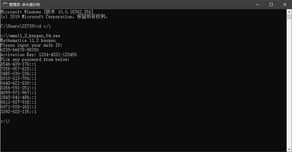 然后输入mma11_2_keygen_64.exe(我会像这样:C:\\ mma11_2_keygen_64.exe)