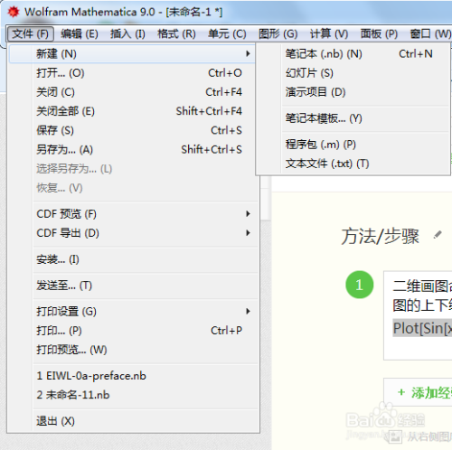 首先打开mathematica,然后文件--》 新建--》笔记本, 这样就完成了画图的基本工作。