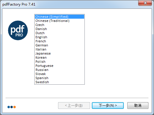 1.下载pdfFactory,解压压缩包,双击.exe文件,弹出界面,选择语言【Chinese Simplified】,简体中文,