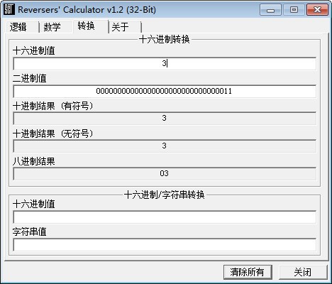 Reversers Calculator中文版是一款非常强大的16进制计算器,它对进制转换十分有帮助!Reversers Calculator 能进行十六进制的逻辑、数学、转换的计算,支持将十六进制和二进制转换为十进制(有/无符号)和八进制结果,并可将字符串转换为十六进制值,有需要的朋友可以下载使用,小巧,绿色是它的特点。
