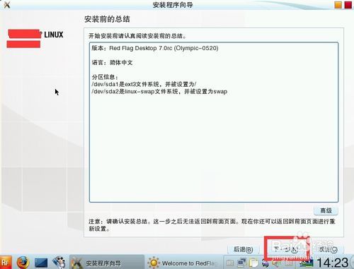 11:这里会有一个安装前的总结,也就是参数确认。确定没有问题后点击下一步