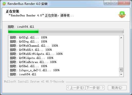 3.正在安装RenderBus Render 4.0”正在安装,请等候...抽取: icudt54.dl1