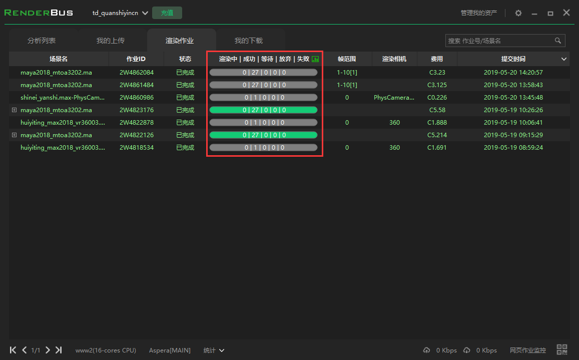 显示红色的帧是渲染失败帧,通常情况下,可以在客户端右键任务,点击重提失败帧,3-5次左右,每次重提都需要刷新下。