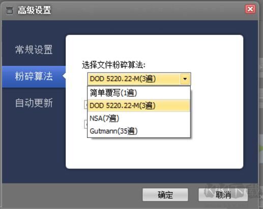 1、点击“高级设置”进入界面;2、点击“Alogrithms”选项卡,在“粉碎算法”下载框中选择清除算法。点击确定即可。
