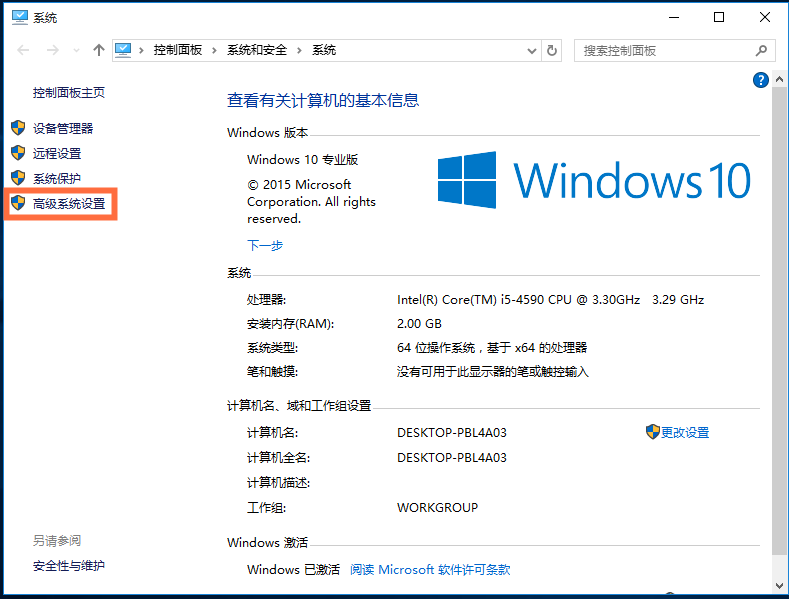 右击【此电脑】,选择【属性】,进入系统页面,点击【高级系统设置】选项,