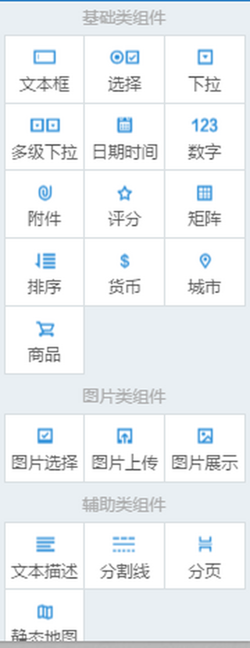 1、文本、图像、附件、地理位置...多达57种组件可供选择。