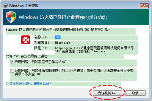 您的防火墙可能会有安全警报,此时根据您的情况选择即可。最后点击允许访问。