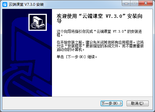 2.欢迎使用“云端课堂v7.3.0”安装向导络个向导将指引你完成“云端课堂V7T.3.0”的安装进程。点击下一步,开始安装
