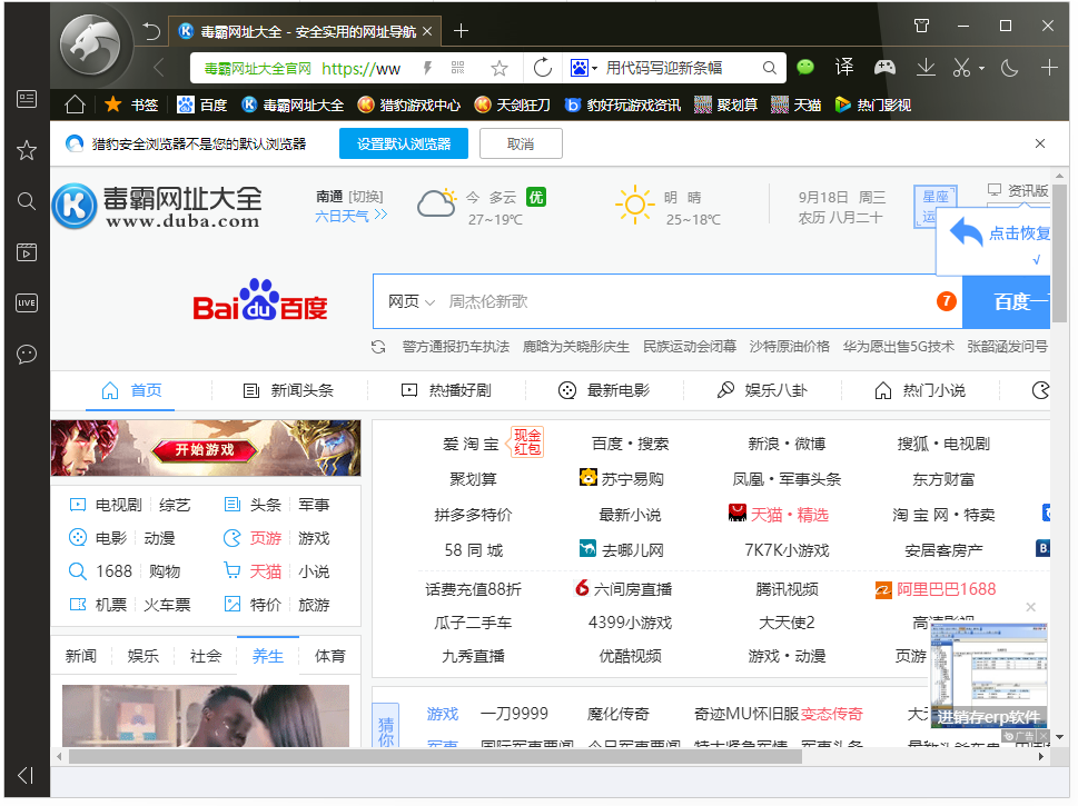 【极速内核】软件采用国内领先的Chrome57极速内核,技术优化内核代码结构,提升加载网页速度。【安全防护】软件由金山网络推出,采用金山自家的BIPS进行安全防护,上网无忧。【界面渲染】简洁酷炫的界面,全新架构,界面渲染减少CPU占用,提升性能。【减少占用】智能化后台,减少物理内存使用,非工作状态时,自动减少物理内存占用,节约系统资源。猎豹安全浏览器功能