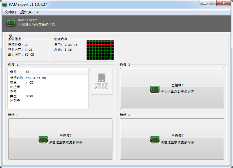 3、如果有两根或更多内存条的话,插槽2、插槽3、插槽4中也会有对应的数据显示。没有的话会显示空插槽。
