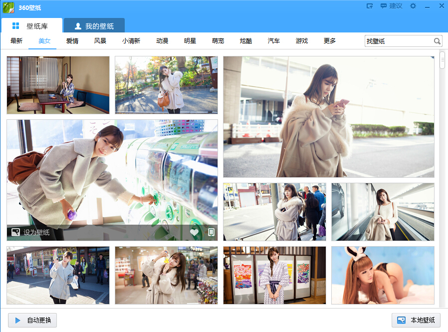 1.拉一下更换壁纸。拉动壁纸,使桌面美化更加有趣,壁纸搜索更容易找到你最喜欢的东西。内置强大的图像搜索引擎,告别频繁翻页,快速找到想要的壁纸,省时省力,更加潮湿。2.高清美图自动更换。单击即可打开自动更换壁纸的功能,无需指定图像,只需指定喜欢的图像分类,在指定的时间间隔内自动更换壁纸,每天都有新的气息!3.下载壁纸收藏选择你喜欢的。我的收藏由我决定,收藏喜欢的壁纸,支持自动自由交换,每天改变心情!4.自由选择十大分类。各种各样的分类风景新、动画、明星、恋爱、萌宠物、电影、汽车,大量壁纸由你选择,分类更详细,内容更丰富,总是添加最新新的壁纸,你的电脑每天都有最新、最精致的表情。