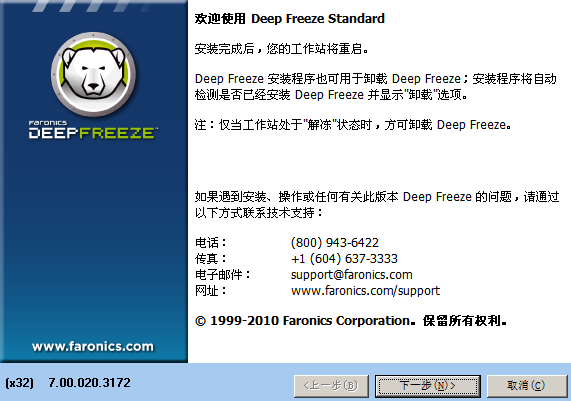 3、运行Deep Freeze安装程序,然后按照提示,一步一步进行操作即可卸载。