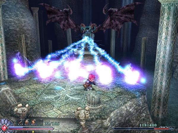 在战斗中,伊苏菲尔盖纳之誓约加入了两段跳和旋风跳等等新动作,让游戏的操作性大大增强了。通过代表风、火、地的三个腕轮,你可以使用各自属性的特殊技,帮助你更好地战斗或是完成任务。
