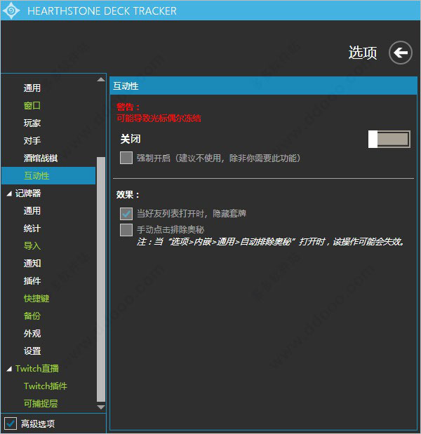 3、互动性就是打开好友栏可以直接隐藏敌方卡组以便看好友栏。奥秘变灰是可以自己手动排除奥秘,不过HDT有自动排除的功能;