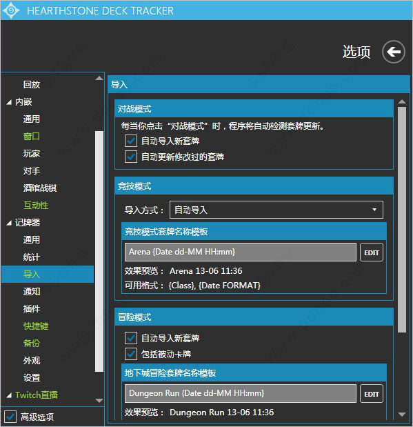 6、导入设置可以全选自动,再主菜单界面选择相应的导入跟着开炉石进相应模式就自动完成了,非常便捷;