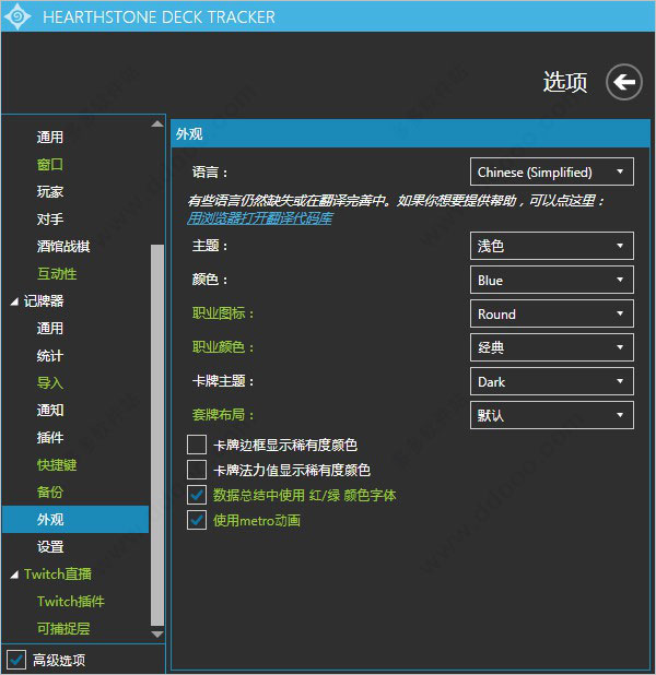 8、这里是选择外观,整体记牌器的颜色,卡牌风格,布局等等,可以按自己口味试试调整;