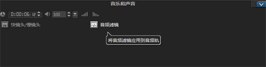 1、在音乐轨道上选择材质,展开“选项”面板,然后单击“音频过滤器”按钮