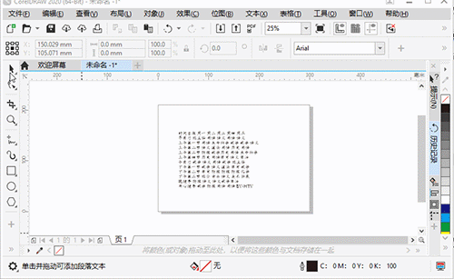 2、将内容复制到coreldraw x5中的“文本工具”的光标处。