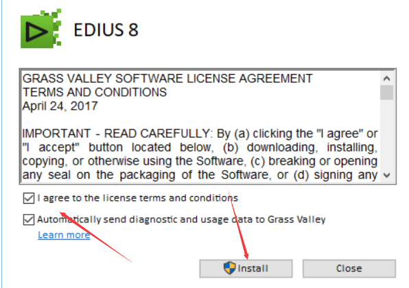 7、进入到EDIUS PRO软件准备安装界面,直接点击界面下方的“install”选项,软件就开始安装了。