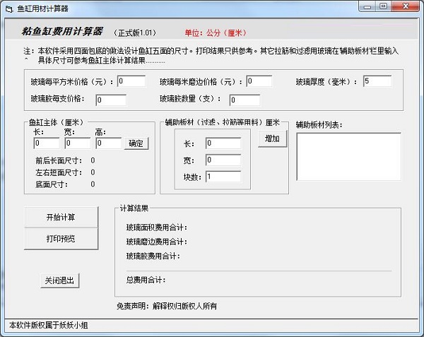 1、除了鱼缸的玻璃价格,还能计算出拉筋和过滤等等的其他材料的价格,非常实用。
