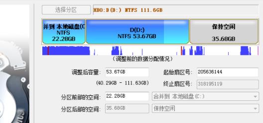 3、通过拖动或者输入容量来确定装换的空间大小,点击开始即可合并。