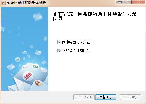 4、勾选“创建桌面快捷方式”,单击“关闭”按钮结束安装