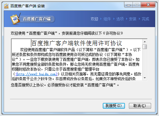 1、下载最新版本的百度推广客户端安装包,双击即可运行。