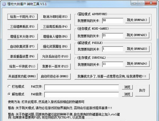植物大战僵尸修改器3.1是一款被开发出来专门为用户们调整高难度 植物大战僵尸游戏的辅助工具软件。使用 植物大战僵尸修改器3.1用户们就可以轻松的修改游戏中的各种数据了,有需要就快来下载吧。