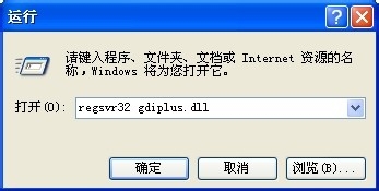 3、最后点击开始菜单-->运行-->输入regsvr32 gdiplus.dll 后,回车即可解决错误提示!