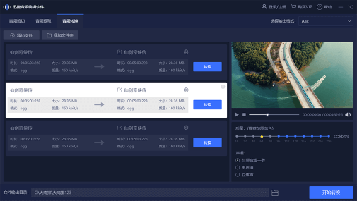4、等到将音频选择好之后,然后我们轻轻点击“开始转换”按键后,转换进程就自动开始了,我们耐心等待一会进程就会结束,然后转换后的文件就储存在您的电脑中了。