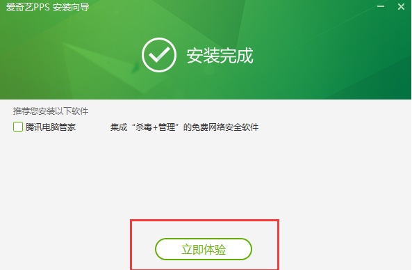 用户如果需要的话可以勾选以后点击下方的立即体验,软件会自动安装到电脑上,如果不需要取消勾选点击立即体验就可以开始使用爱奇艺了。